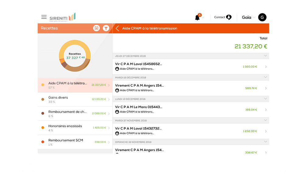 Selon votre activité, Sireniti se charge de vous donner une vision sur votre trésorerie, vos recettes encaissées, votre revenu net estimé/votre chiffre d’affaires, le seuil de votre chiffre d’affaires de l’année, le seuil des charges de l’année et vos cotisations prévisionnelles.
