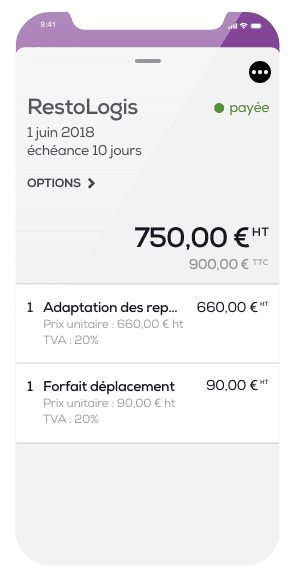 Enregistrez vos clients et fournisseurs. Personnalisez vos devis et envoyez-les directement à vos clients. Une fois vos devis signés, transformez-les en factures et suivez le statut de vos factures envoyées. Le tableau de bord simplifie le pilotage votre activité.